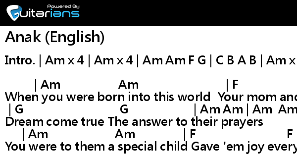 Anak English Version Lyrics - Freddie aguilar — anak lyric video with chords.