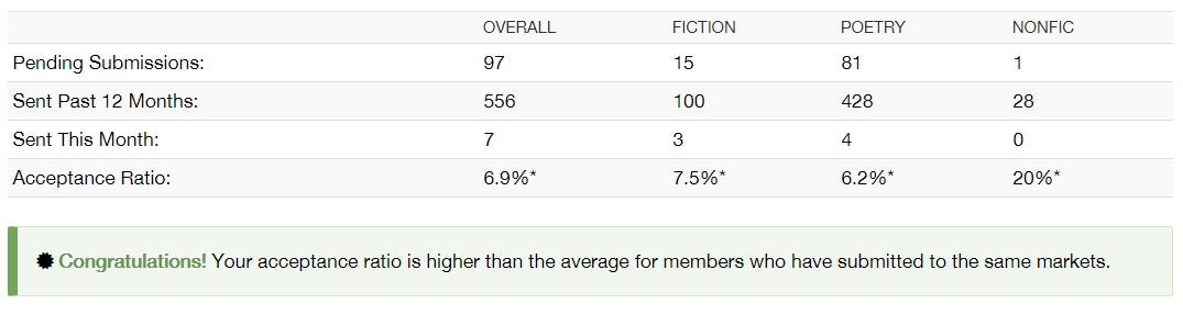 Clarkesworld Submission Grinder / 4 stories a month / 48 stories in 2017.