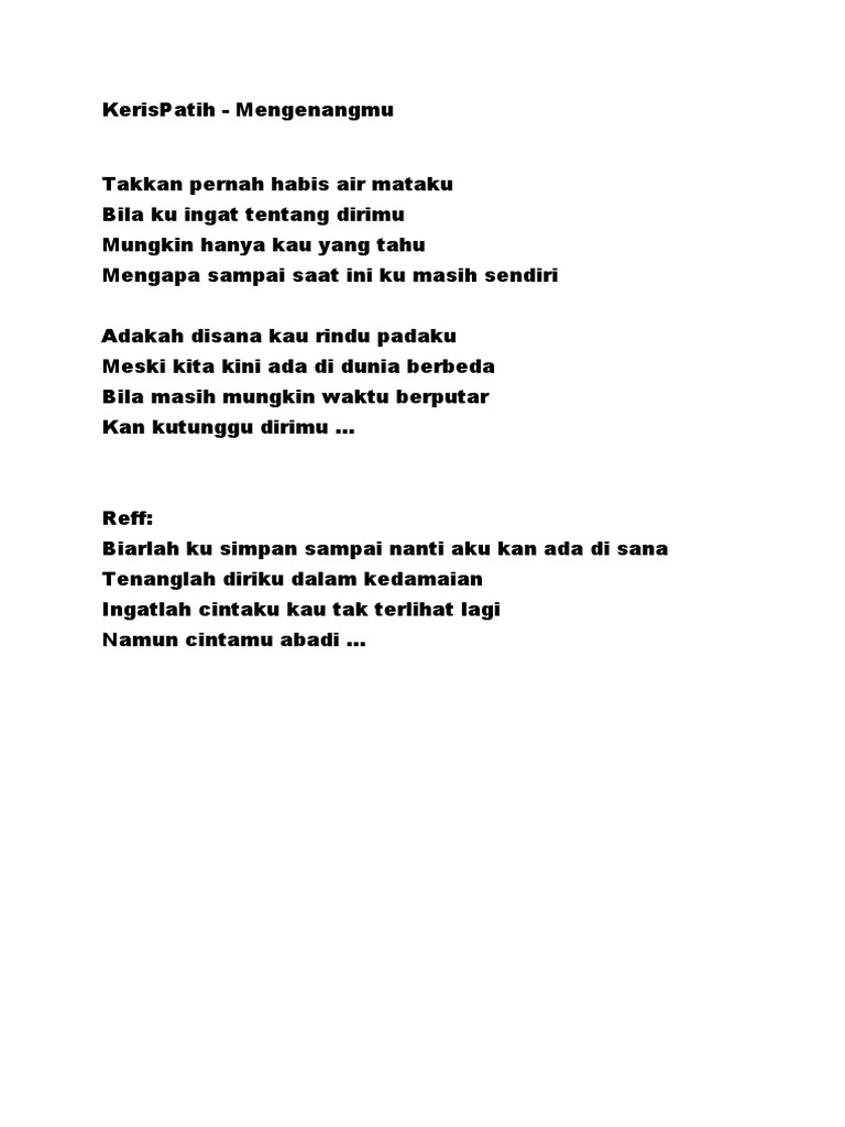 Sesungguhnya Ku Tak Rela Kerispatih : C dm saat ini sejenak dengarkanlah sayang g c semua itu hanya perjalanan am dm dan mungkin aku akan.