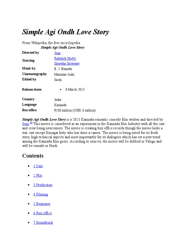 Simple Agi Ondh Love Story Songs / Simple aagi ondh love story is one movie that generated huge hype without any star being in the main cast.