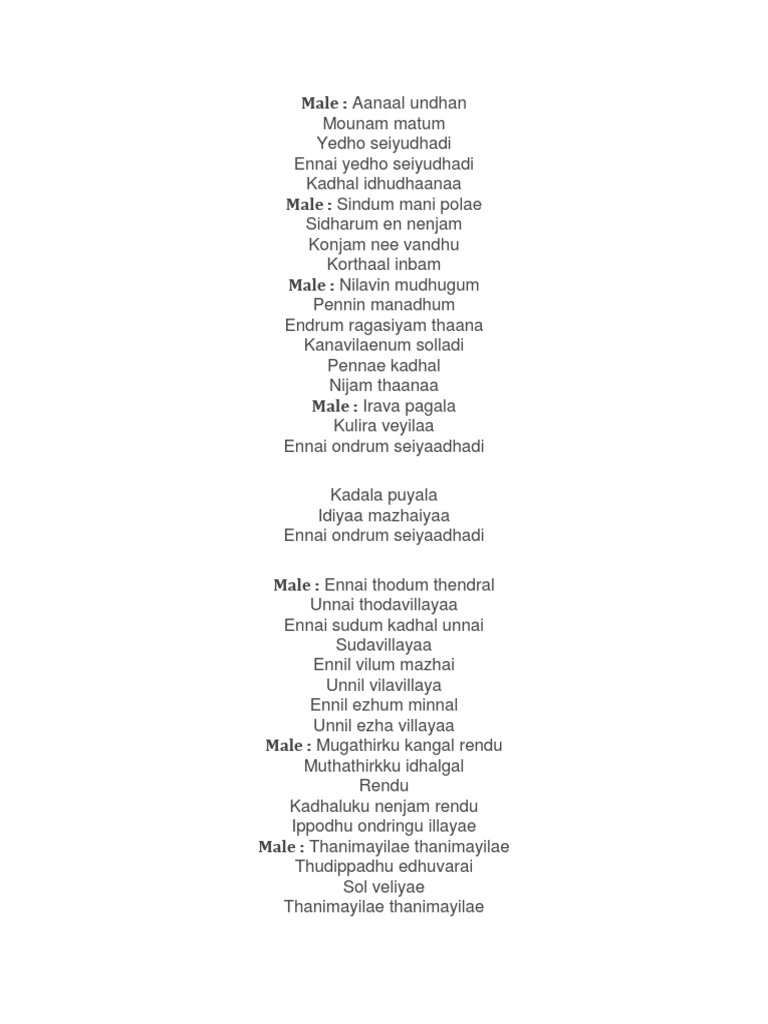 Thendral Vanthu Lyrics In English : Lyrics of tamil song thendral vanthu ennai thodum movie: